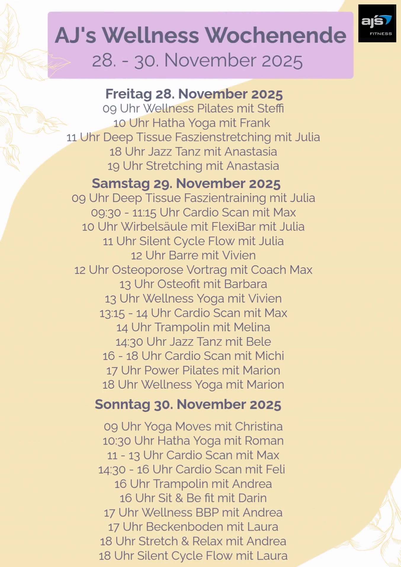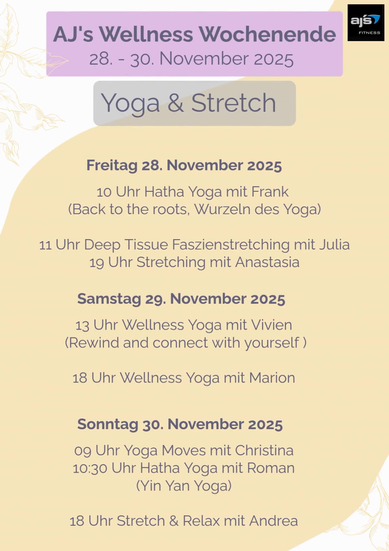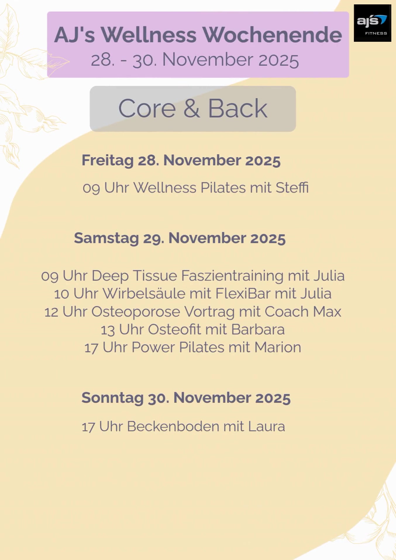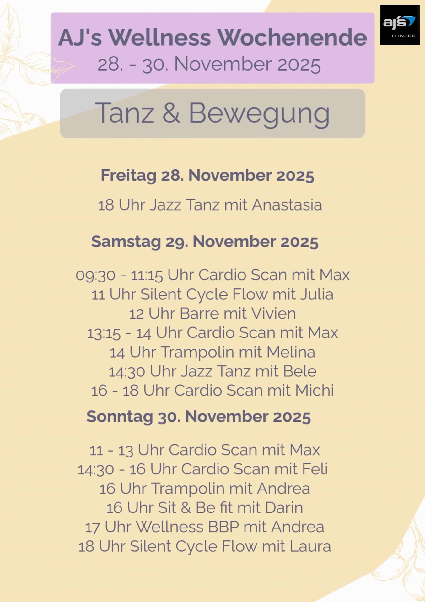 Herzlichst, Dein AJs Group Fitness Team